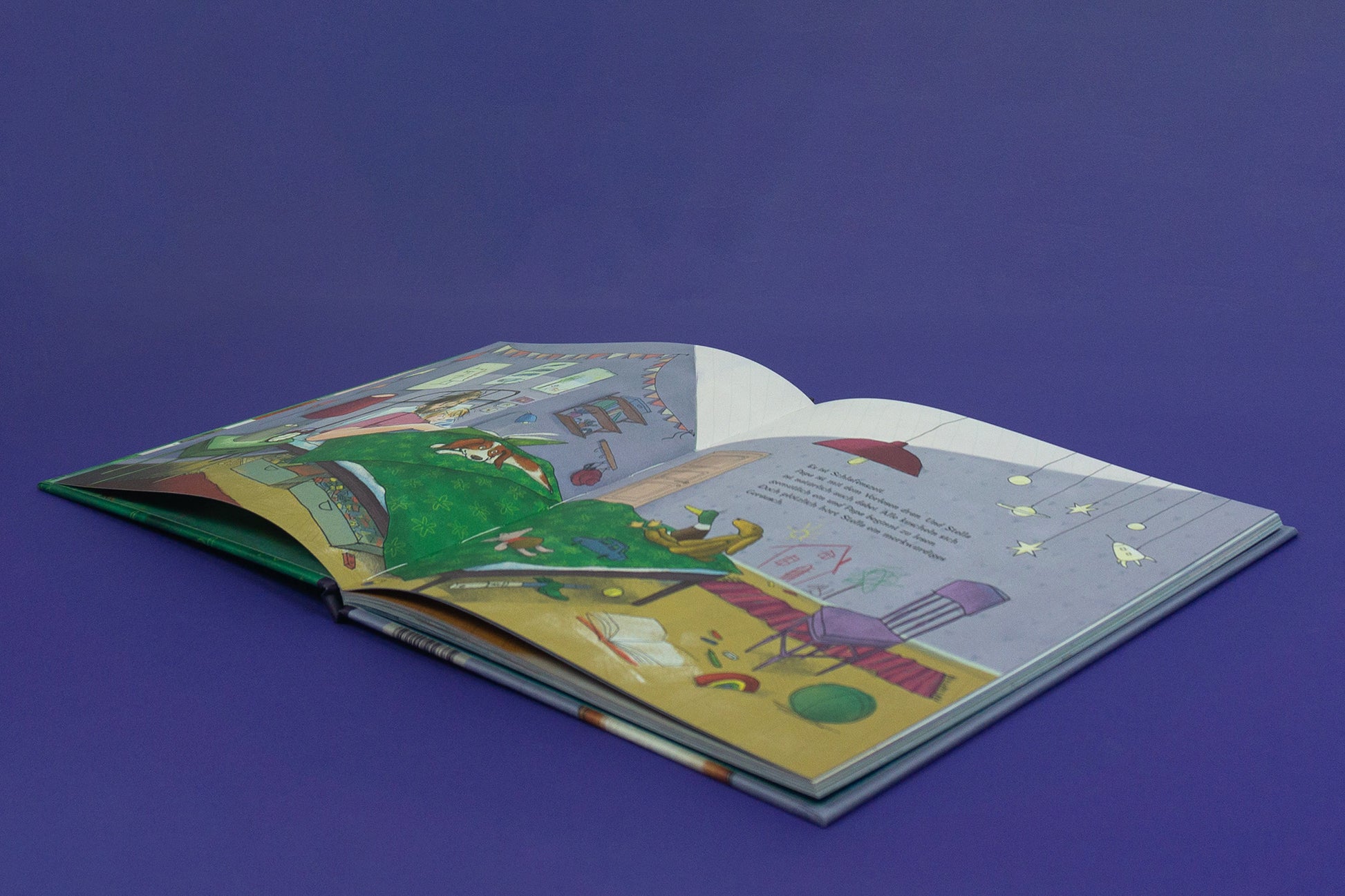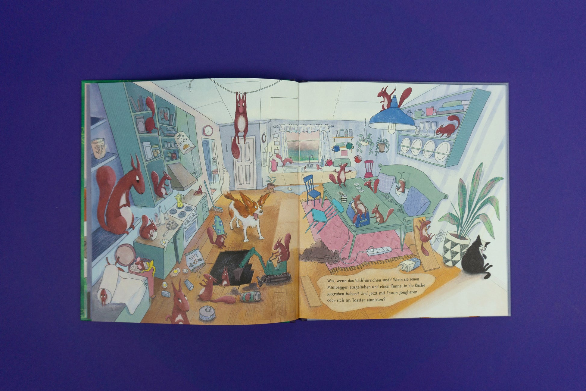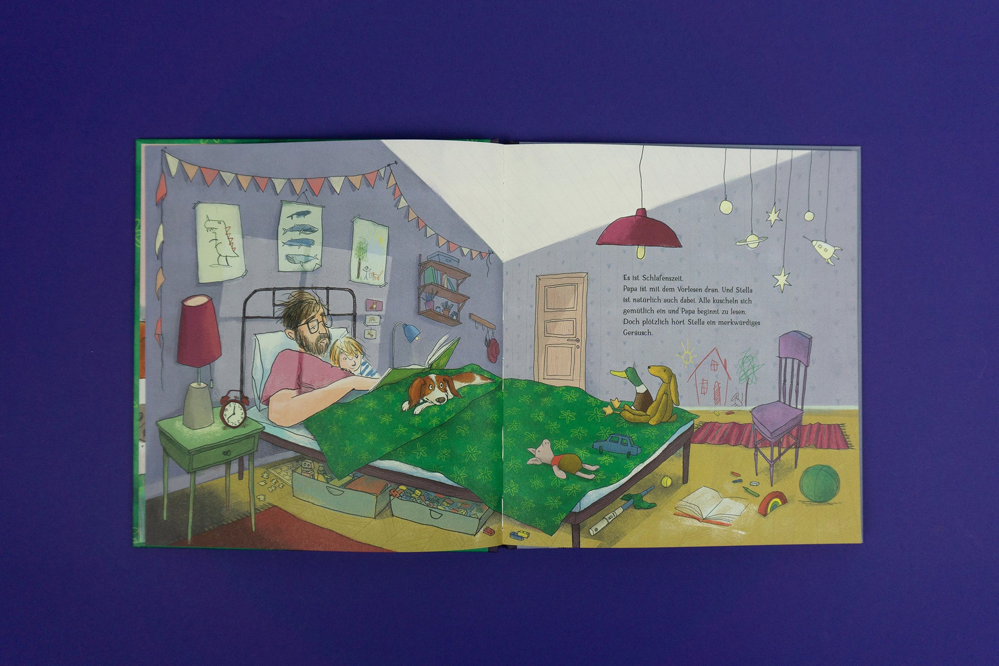 Alles ist bereit für die Gute-Nacht-Geschichte von Papa, nur Hündin Stella kann nicht einschlafen. Was hören Sie da? Etwa Eichhörnchen, die einen Tunnel graben? Oder ist das doch Oma mit einem großen Braten? Vielleicht ist es sogar ein Bus voller Hunde, der ins Wohnzimmer kriecht?