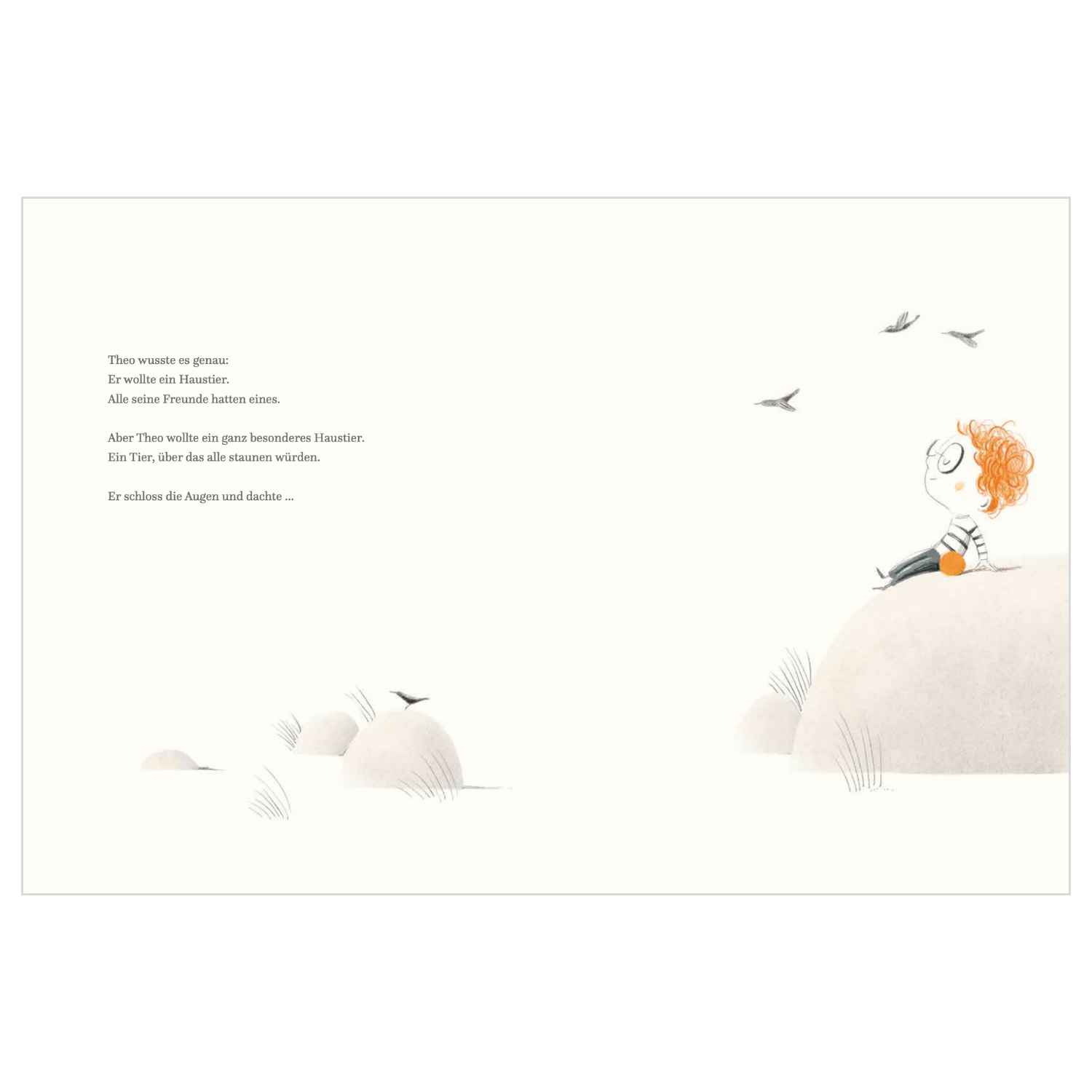Theo wünscht sich ein Haustier, doch es soll auf keinen Fall ein normales Tier sein! Ein Wal, ein Bär oder ein Löwe vielleicht? Aber nein ... zu groß, zu verschlafen, zu gefährlich. Zufällig trifft er den Hund Oskar, der sich schon lange ein Herrchen wünscht – und natürlich hat auch Oskar sehr genaue Vorstellungen! Doch es geschieht, was keiner von ihnen geahnt hätte: Sie sind zwar beide ganz gewöhnlich, werden aber ganz besondere Freunde!